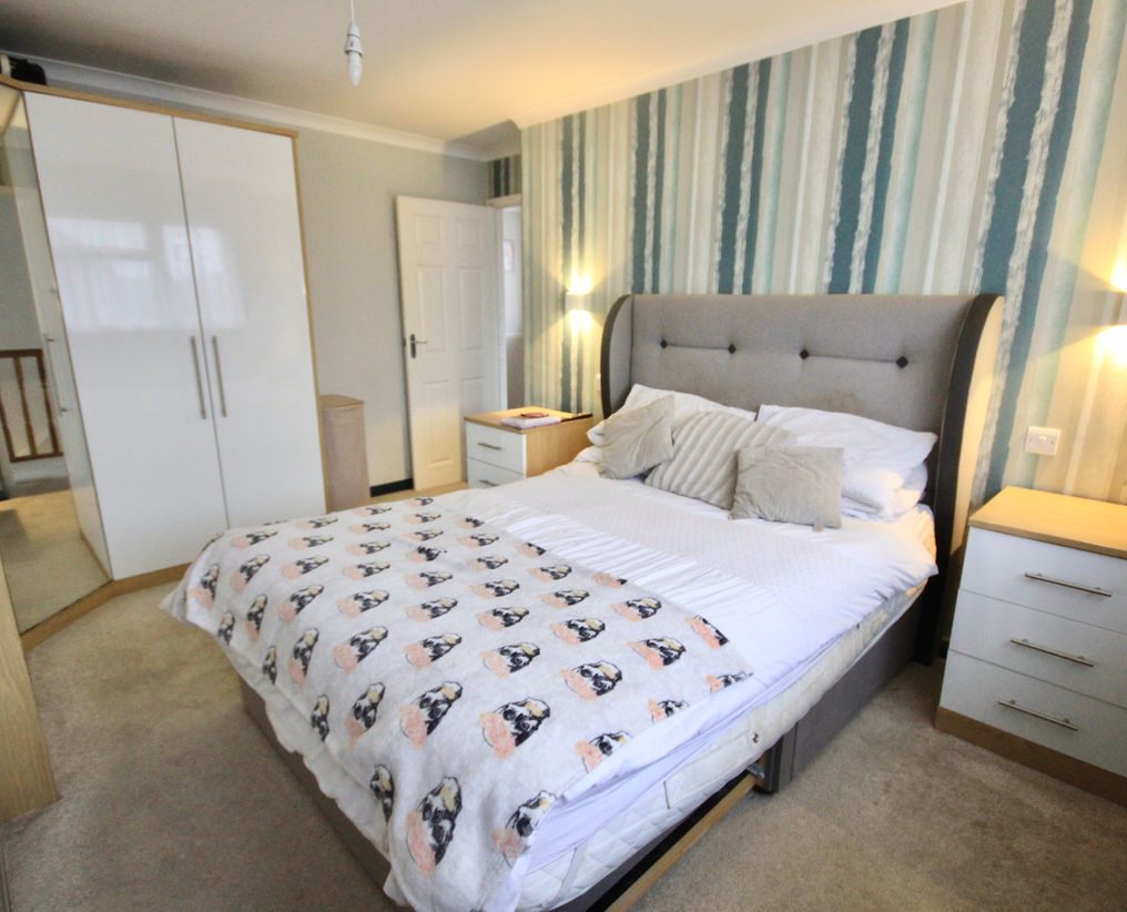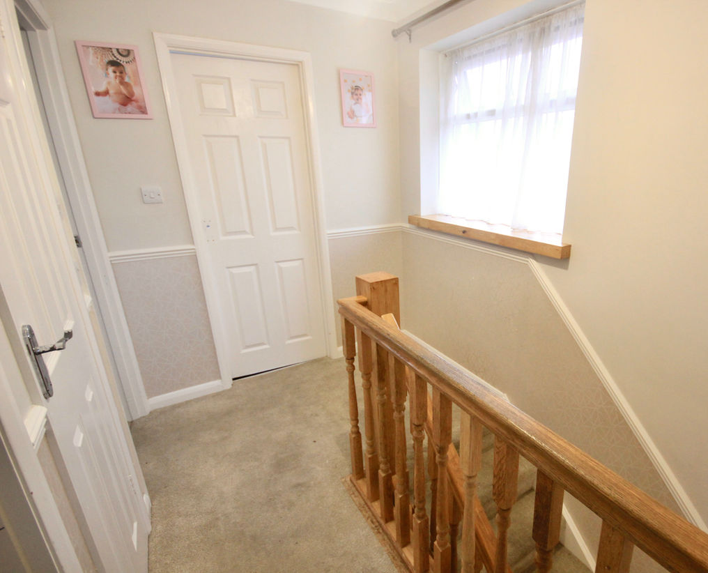 To the first floor, a bright and airy landing leads to three well-proportioned bedrooms. The principal bedroom is a generous double with ample space for bedroom furniture, while the second double bedroom enjoys views over the rear garden. The third bedroom, although smaller, still provides comfortable accommodation. These rooms are served by a modern family bathroom.